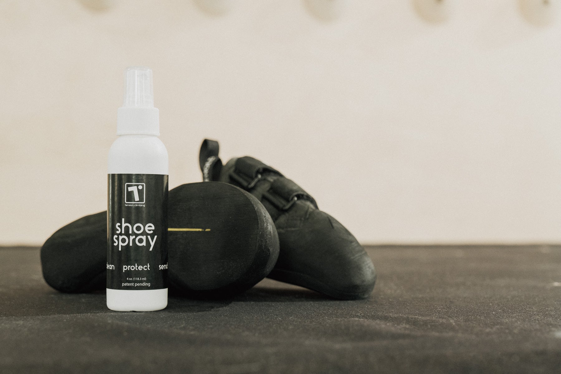 Over time rubber becomes stiff and slick due to exposure to oxygen. The Shoe Spray is specially formulated to perform three key functions. First, the solution removes dirt and chalk leaving the shoe rubber free of debris. Second, the spray deoxidizes the rubber which restores it to its original tacky feel. Finally, the conditioning agent protects the rubber and helps maintain its tacky feel by slowing oxidation.